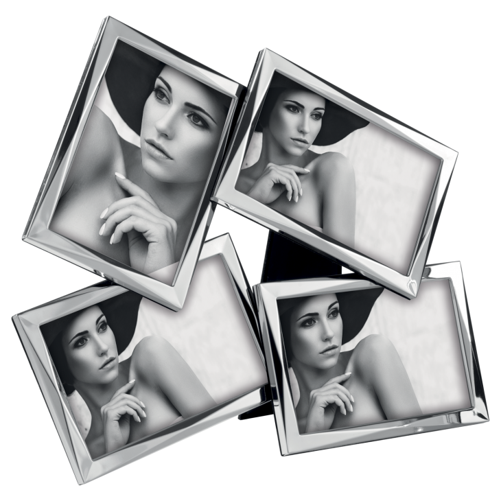 Cadre photo multiple élégant en métal avec finition brillante, parfait pour exposer plusieurs souvenirs. Structure robuste avec dos en velours pour une présentation raffinée de vos photos.