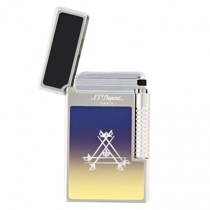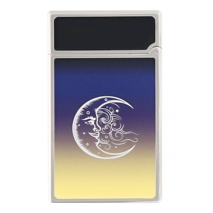 The Aurore line, with soft and luminous shades, evokes the peace and serenity found after tumultuous trials, announcing a renewal with its brilliant and rosy glow. The Grand Dupont, lacquered in gradient purple, features the logo of the prestigious Montecristo cigar brand in gold on one side, while the other features a golden sun and moon decoration.