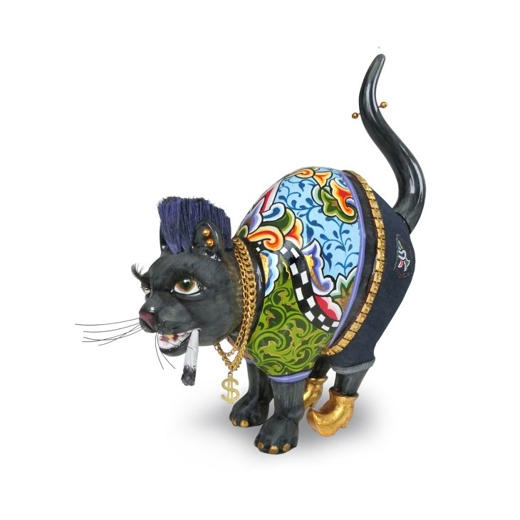 Having bright colors and adorned with gold leaf, Tom's Drag is an extraordinary universe of multicolored, funny, offbeat figures and shapes, in all the colors of the rainbow. Design objects for the home which are unique, and have roots: in European and American "Pop art".