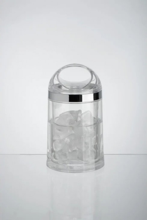 Un Seau à Glaçons/ Bouteille deux en un : seau à glaçons isotherme avec pince et couvercle, et coque isotherme. Un couvercle avec poignée de transport et une pince à glaçons complètent le seau à glace .