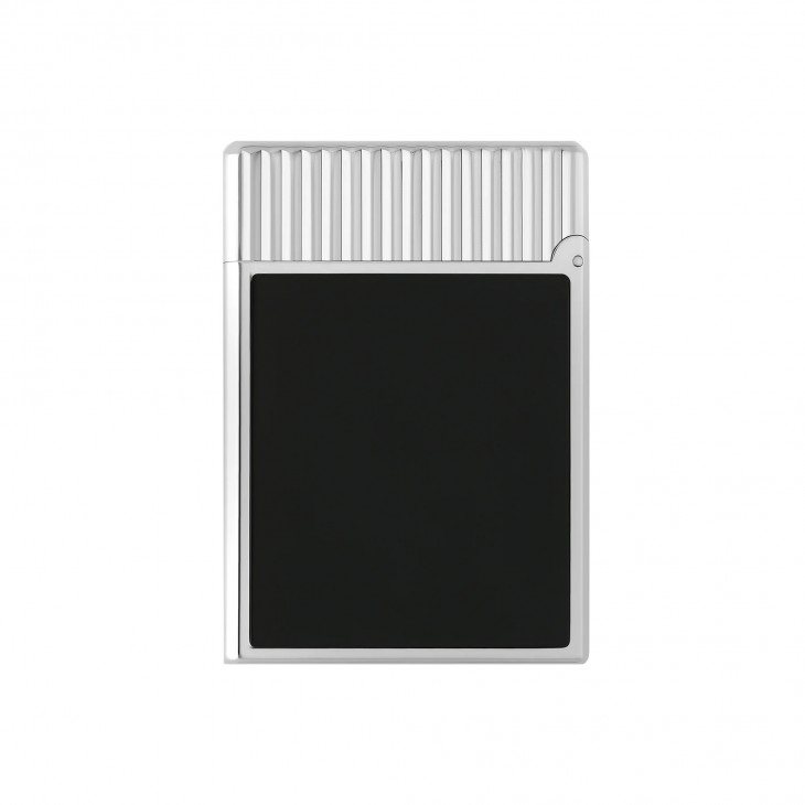 Toujours le plus compact des briquets de luxe, il conserve son guillochage vertical signature, parfois sublimé par la laque noire emblématique de la Maison.