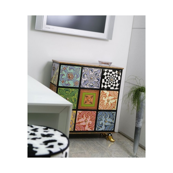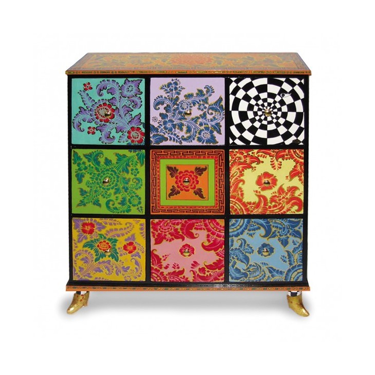 Une commode remarquable avec neuf tiroirs, désormais l’un des grands classiques de la collection Tom’s Drag. Ajouter une touche de couleur audacieuse avec un meuble « drag » est une affirmation de style assumée. Chaque pièce est fabriquée à la main en MDF, puis peinte avec soin jusque dans les moindres détails.