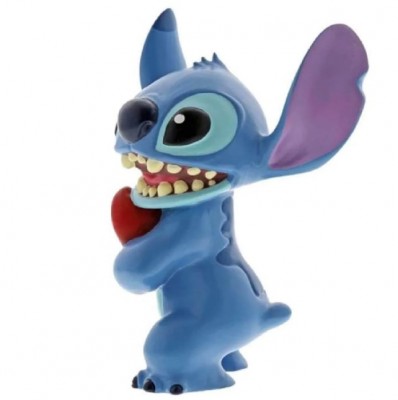 Laissez-vous attendrir par cette magnifique figurine officielle Disney Traditions représentant Stitch tenant un cœur dans ses mains.